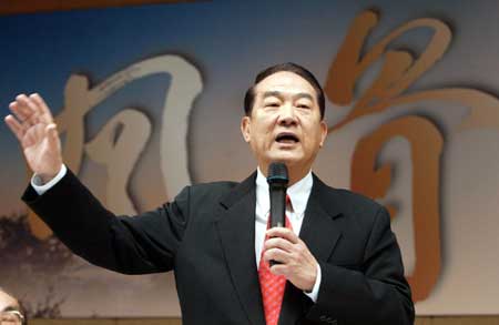宋楚瑜二月二十五日出席前高雄縣長(zhǎng)林淵源“風(fēng)骨─林淵源八十談往”新書(shū)發(fā)表會(huì),批評(píng)藍(lán)綠兩位“大選”候選人辯論會(huì)都未真正面對(duì)問(wèn)題。(“中央社”圖;孫仲達(dá)攝)
