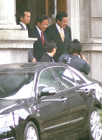 圖:扁馬會結(jié)束 陳水扁送馬英九搭車離去