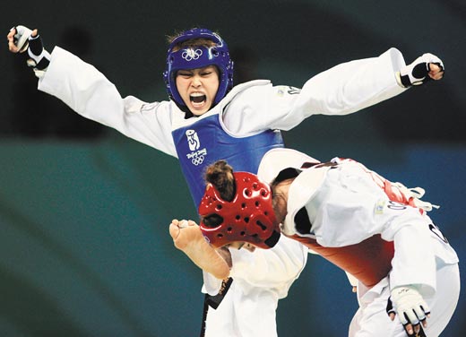 圖:跆拳道女將蘇麗文負(fù)傷參加銅牌戰(zhàn)