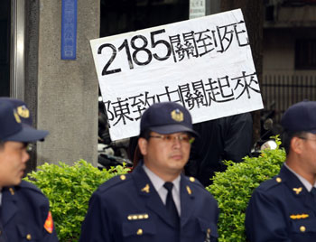 組圖:洗錢案陳致中夫婦出庭 庭外民眾抗議