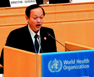 中新網(wǎng)5月20日電 臺灣“中央社”發(fā)自日內(nèi)瓦的報(bào)道稱,當(dāng)?shù)貢r(shí)間19日下午,臺灣衛(wèi)生部門負(fù)責(zé)人葉金川首度在世界衛(wèi)生大會(WHA)全體會議上發(fā)言。