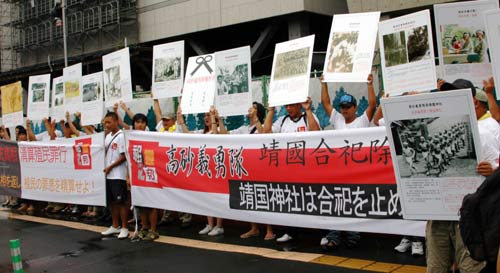 據(jù)臺(tái)灣《聯(lián)合報(bào)》報(bào)道,一行50多人于中午時(shí)分前往日本國(guó)會(huì)議事堂旁邊的參議員會(huì)館前,高舉控訴日本殖民時(shí)期迫害臺(tái)灣少數(shù)民族的巨大布條及歷史照片,高喊“拒絕參拜”、“還我祖靈”、“日本反省、謝罪和賠償”等口號(hào),表達(dá)他們對(duì)日本的抗議。