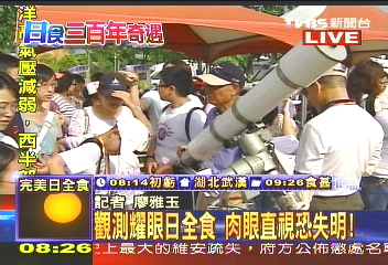 一大早,臺灣島內(nèi)的電視臺就開始通過直播報道,外派記者紛紛從成都、重慶、武漢、杭州等地發(fā)回報道,島內(nèi)觀眾通過第一時間如臨現(xiàn)場欣賞到日全食盛況。