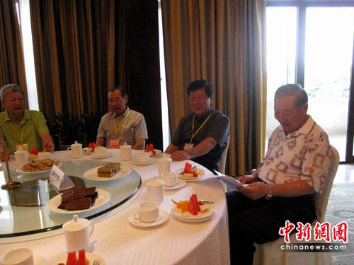 “軍人之間很容易溝通。”大陸退役將領(lǐng)趙國鈞中將在此間茶敘活動中如是表示。如他所說,剛一落座的將軍們,談的是上午的球賽,哪一桿最精彩,不一會就從球談到了酒。軍人出身的各位將軍談及酒個個神采飛揚。其中提到一種“深水炸彈”的喝酒方法,使得兩岸海軍退役將軍產(chǎn)生了共鳴。原來,將一只生雞蛋打入啤酒中,一起喝下去的飲酒方式,兩邊軍營中都有,而且叫法也相同。