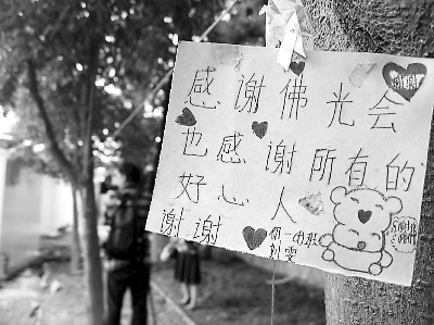 5月5日,采訪團(tuán)走進(jìn)四川江油市彰明中學(xué),正對(duì)大門(mén)的主教學(xué)樓正在趕工,但已初具宏偉外觀。校園內(nèi)的花壇里、樹(shù)枝上掛滿(mǎn)五顏六色的千紙鶴、紙百合和卡片,上面寫(xiě)著學(xué)生的感恩和憧憬。一張卡片上寫(xiě)著:“感謝佛光會(huì),也感謝所有好心人!
