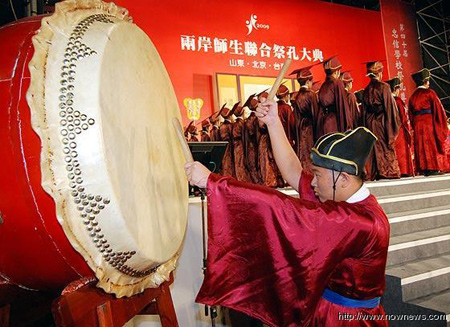 這場兩岸師生聯(lián)合祭孔大典盛會,有來自于山東的76名師生、北京的103名師生,臺灣部份,則有來自臺灣新竹教育界代表、忠信學(xué)校5600余名師生、2000余名在學(xué)學(xué)生家長,以及3000余名忠信畢業(yè)學(xué)生的參與,這也是近60年來,臺灣民間祭孔最大的一次集會。