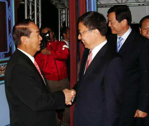 宋楚瑜選在板橋林家花園觀稼樓和韓正會(huì)面,親民黨與會(huì)者包括副主席張昭雄、秘書長(zhǎng)秦金生等人。