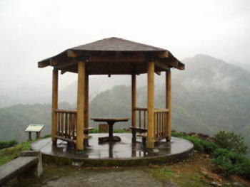 一路上爬,到達(dá)遠(yuǎn)高處,山路又盤(pán)而向下,然后再上盤(pán)往另一高崗。抵達(dá)另一高處時(shí),路旁設(shè)有一座雨量測(cè)量站,這里也是車(chē)道的終點(diǎn),前方不遠(yuǎn)處有一涼亭。由水柳腳形象商圈的牌樓至涼亭,約1.2公里,路程約25分鐘。