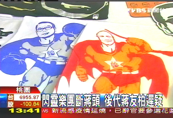 蔣介石、蔣經(jīng)國的肖像印在T恤上,身體卻是肌肉猛男、緊身衣加披風,“兩蔣”變超人,蔣友柏的設(shè)計公仔再度出擊,實在很鮮。