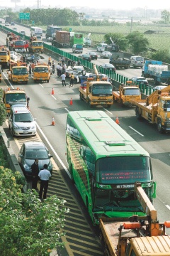 警察擔心槽車爆炸,前晚十時起封閉外側(cè)兩車道,僅開放內(nèi)側(cè)車道,導(dǎo)致大塞車,車陣超過十公里,直到昨天中午仍未排除。