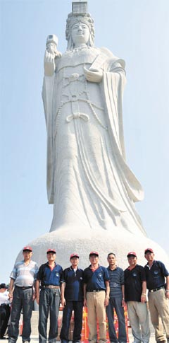 縣府文化局專員吳曉云說,縣府大力爭取當(dāng)局支持興建媽祖巨神像,并邀請(qǐng)“立法院長”王金平出任籌備會(huì)榮譽(yù)主委,今年6月動(dòng)土興建,10月初完成高達(dá)28.8公尺的巨像,全部以花崗巖打造,是全世界最高的媽祖巨石神像,日前舉行開光儀式,25日于“媽祖升天祭”大典中正式揭幕。