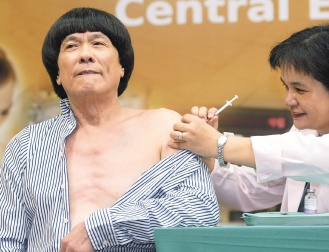 甲型流感疫情持續(xù)上升,島內(nèi)出現(xiàn)第三十名死亡病例,為臺(tái)南縣一名四歲女童,她是島內(nèi)年齡最小的死亡病例,也是第六名十二歲以下的死亡病例。為促銷甲型流感疫苗,“疾病管制局”昨天請(qǐng)來藝人豬哥亮擔(dān)任防疫大使,豬哥亮很豪邁脫下襯衫,半裸上身接種疫苗,還說“一點(diǎn)都不痛”。