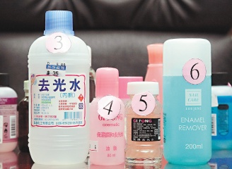 被驗出含甲醇的去光水甲醇含量達29.6%至75.6%。臺北市衛(wèi)生局藥食處處長姜郁美表示,為讓指甲油溶化,去光水多含有機脫脂溶劑,大部分以丙酮為主要成分,但部分廠商因成本考慮,可能會添加甲醇,由于甲醇吸收入體內(nèi),在肝臟中會被氧化酵素轉(zhuǎn)化為致癌物“甲醛”,可能對視網(wǎng)膜、中樞神經(jīng)、肝、淋巴造成嚴重傷害。