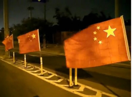 據(jù)民眾發(fā)現(xiàn),但是在附近沙鹿交流道與中清路上,被插上9面五星紅旗,強(qiáng)風(fēng)吹襲下迎風(fēng)飄揚(yáng),十分醒目,尤其在車燈照射下,很遠(yuǎn)就可看見,還有人停車拿起手機(jī)拍照紀(jì)念。