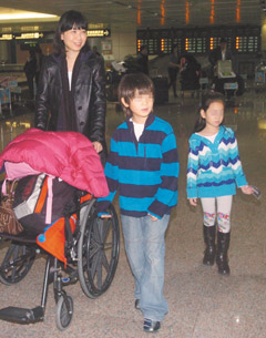 周慧婷日前因?yàn)椴瓤账,女兒眼角受傷、兒子骨折,一個(gè)人得拄著拐杖想辦法打包所有行李,左腳摔傷的周慧婷昨坐輪椅下飛機(jī),提領(lǐng)6件托運(yùn)行李后,直接坐上租用的廂型車(chē),再一路照料兒女飛回臺(tái)灣。由于金溥聰?shù)蒙习,加上周慧婷班機(jī)提早半小時(shí)抵達(dá),她人都上車(chē)走了,金溥聰才到。還是記者們見(jiàn)他撲空,立刻提醒他:“你老婆走了耶!”他才急忙把老婆叫回機(jī)場(chǎng),一家4口在車(chē)上團(tuán)員。