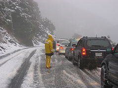 陳昌男說,路面積雪量大,警方于鳶峰實(shí)施交通管制,車輛需加掛雪鏈才能行駛,昆陽以上至松雪樓車輛無法通行,改為徒步賞雪區(qū)。