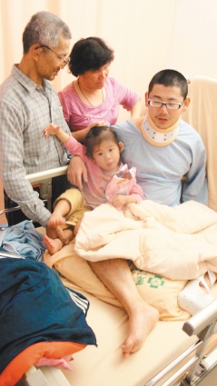 中新網(wǎng)3月3日電 據(jù)臺(tái)灣《聯(lián)合報(bào)》報(bào)道,孝子扛家計(jì),卻因惡性腫瘤住院經(jīng)濟(jì)斷炊。新竹縣28歲的葉棟耀從高中時(shí)天天凌晨4點(diǎn)起床送報(bào),現(xiàn)在則白天當(dāng)保全員,晚上與身障妻子賣口香糖,養(yǎng)活父母和女兒一家6口,日前卻罹患惡性骨腫瘤住院,下半身恐癱瘓,父母老淚縱橫“這么孝順的孩子,怎么這么歹運(yùn)!”