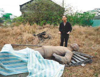 前晚七時(shí)許,這座矗立在站前的銅像被吊臂車拆除,民眾以為有人“偷”銅像,向警方報(bào)案。鳳山警分局趕到現(xiàn)場后,施工人員出示縣府公文,才知道是縣府進(jìn)行火車站圓環(huán)景觀改造工程,要將銅像移位。但民眾質(zhì)疑,即使移位,也要找個(gè)適當(dāng)?shù)攸c(diǎn)安置,為什么丟在雜草地上?