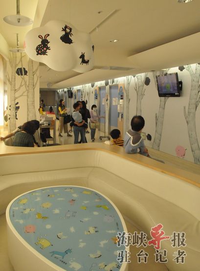 粉色的云狀沙發(fā)、可愛的木馬板凳,一個(gè)巨型的永動(dòng)游戲機(jī)……在這里,你聞不到藥水味,也很少聽到哭聲,有看到一次哭聲是因?yàn)榇笕艘獛『㈦x開醫(yī)院,小孩子迷戀那個(gè)永動(dòng)游戲機(jī),趴在地上看都不想被抱出去。