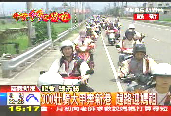 摩托騎士一早從大甲騎摩托車(chē)出發(fā),沿著省道走,要一路趕路到新港迎接?jì)屪。由于已?jīng)比比繞境隊(duì)伍晚了3天,因此今天有義警、義消開(kāi)道,保持車(chē)龍不中斷,希望可以盡早趕到。