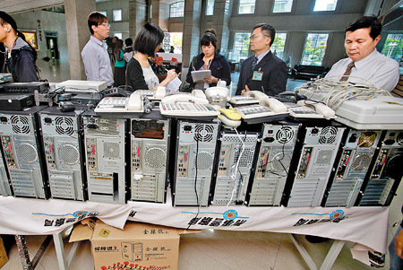 臺灣“刑事局”偵一隊、臺北縣市刑偵大隊昨天兵分十五路查緝,直搗集團(tuán)核心機(jī)房,查扣四十九臺電腦、電話機(jī)九十具、手機(jī)六十七支及現(xiàn)金十一萬,逮捕主嫌陳光著等32人。