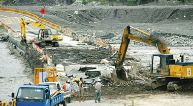 另外,高雄縣新威往六龜?shù)呐_27線甲便道,24日晨遭荖濃溪大水沖毀無法通行,軍方派官兵、機(jī)具搶通備援的六龜隧道;南橫利稻便橋也遭沖毀,包括利稻小學(xué)師生、營養(yǎng)午餐、農(nóng)作物與病患,24日均由“滑索”接送。阿里山區(qū)前天降下超過300毫米的雨量,部分村落、人員受困,多條聯(lián)外道路中斷,救難人員24日前進(jìn)山美,利用“滑索”設(shè)備搭救12位受困新美村民。