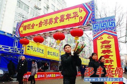 中新網(wǎng)3月5日電 據(jù)青島市臺辦網(wǎng)站消息,3月1日,第21屆糖球會在青島海云庵正式拉開大幕,30萬人首日熱逛糖球會。在靠近糖球廣場的蒙化路專門辟出一條臺灣美食街,久負盛名的臺北士林夜市的20余種臺灣美食慕名前來趕會。此次參會的臺灣美食很多原料都是專門從臺灣運來的。其中將在上海世博會臺灣館中參展的“度小月?lián)忻妗焙汀膀伦屑濉币铂F(xiàn)身糖球會,市民在家門口就可品嘗到這兩種“世博美食”。