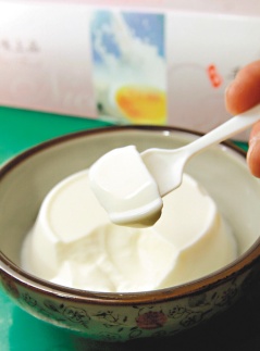 “吃起來很順口,有點(diǎn)彈性,入口涼涼的,不會(huì)很甜!绷纸ê甏蜷_自家奶酪,吃了一口發(fā)出贊美,又吃了口自家水蒸蛋糕,“綿綿密密,很細(xì)膩”,表情陶醉又自信。