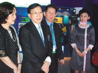 劉兆玄世博之旅的第一站選在臺灣館,昨天下午在王志剛陪同下參觀,他直嘆臺灣館“百聞不如一見”,超出他的想象。劉兆玄并在臺灣館的點燈水臺點了一個電子天燈。