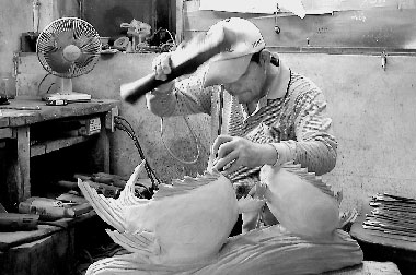 蔡錦旺告訴記者,他曾經(jīng)去過大陸多次,發(fā)現(xiàn)大陸人才濟(jì)濟(jì),而且用工相對便宜,F(xiàn)在,三義有很大一部分的木雕是從大陸進(jìn)口,需要什么樣的作品一張照片傳真過去,當(dāng)?shù)氐膸煾稻湍茏龀霭司懦伞K云串a(chǎn)量,三義沒有優(yōu)勢。他希望,能夠通過不間斷的培養(yǎng)、提高,在原創(chuàng)性、藝術(shù)性上下工夫,讓三義出現(xiàn)更多朱銘這樣的大家,兩岸在設(shè)計(jì)和批量生產(chǎn)上進(jìn)行合作,才是三義木雕以后發(fā)展的方向。(記者 陳夢婕)