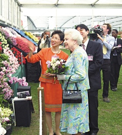 報(bào)道說(shuō),花展開(kāi)幕前一天,伊麗莎白二世按慣例親往參觀,女王在四十五分鐘的停留時(shí)間內(nèi),花了五分鐘駐足臺(tái)灣攤位前,聽(tīng)取臺(tái)“駐英代表”張小月解說(shuō)臺(tái)灣蘭花之美。