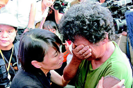 另外幾個地方,同樣有許多聲淚俱下的災民,她依然不斷輕撫災民的肩、背,撫慰大家:“我們一起面對困難,要堅強、勇敢地站起來,走出難關!