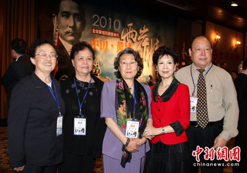 5月10日,“中山·黃埔·兩岸情”論壇首度在臺北開幕。來自海峽兩岸、港澳、歐美的黃埔軍校校友及后代、知名學(xué)者100多人與會。圖為曾擔(dān)任黃埔軍校政治部主任周恩來侄女、黃埔4期生周恩壽之女周秉德(中),黃埔軍校1期生、抗戰(zhàn)時八路軍副總參謀長左權(quán)將軍之女左太北(左1),黃埔二期生胡靖安將軍之女胡葆琳(右2)等人出席論壇開幕式。(中新社記者 董會峰/攝)