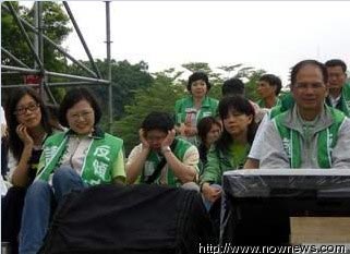 至于謝長廷,也因為精神不濟,先到后臺稍做休息,而靜坐舞臺上,僅剩黨主席蔡英文和游錫堃率領(lǐng)部分黨公職坐在臺上,聽著新聞關(guān)心時事。此外,現(xiàn)場也可發(fā)現(xiàn),部分“立委”因靜坐一宿,體力已超出負荷,紛紛在舞臺上打起瞌睡,有的人甚至悄悄地消失不見了。