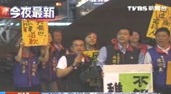 藍(lán)營議員高喊:“謝志偉道歉!民視負(fù)責(zé)!謝志偉道歉!”藍(lán)營議員算準(zhǔn)謝志偉上班時間,帶隊到民視大門口抗議,但兩排警力層層擋住大門口,臺北縣議員陳明義,腳進(jìn)不去,干脆用手丟雞蛋泄憤。