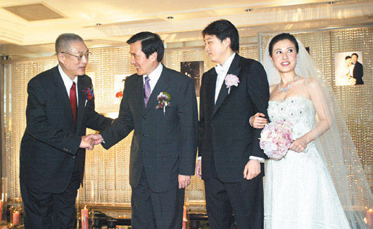 結(jié)婚酒會(huì)由吳伯雄證婚,馬英九貴賓致詞,期勉新郎至少要生三個(gè)以上。他也詢問(wèn)新人婚后是否定居臺(tái)灣,當(dāng)?shù)玫娇隙ù鸢负,隨后竟爆出“那就歸我管了”,讓現(xiàn)場(chǎng)笑翻天。