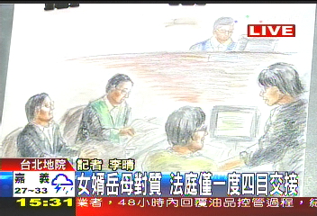 中新網(wǎng)6月25日電 據(jù)臺(tái)灣TVBS報(bào)道,陳水扁弊案開(kāi)庭審理,今天(25日)由陳水扁與岳母吳王霞當(dāng)庭對(duì)質(zhì),在法庭內(nèi)兩人僅一度四目交接,而在吳王霞對(duì)質(zhì)結(jié)束離開(kāi)時(shí),陳水扁才點(diǎn)頭向岳母示意。