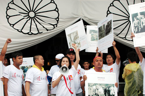 8月11日,高金素梅一行于上午9時30分左右搭車出其不意地抵達靖國神社,隨即高舉“要求靖國還我祖靈”等大型橫布條標語,浩浩蕩蕩地列隊走向靖國神社的正殿,并高喊口號。靖國神社的警衛(wèi)人員前往阻擋,企圖奪走標語布條,雙方發(fā)生肢體沖突。