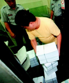 為避免意外,一直到深夜12點(diǎn),轄區(qū)中正一分局及法警還在臺(tái)北地院四周戒護(hù)。這時(shí)眼尖的記者看到蔡守訓(xùn)抱著一千多頁的判決書步出辦公室,書類上貼了許多黃色的便利貼,交給專人送到法院附近的印刷廠,連夜趕印。