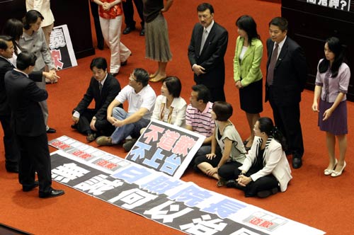 民進(jìn)黨團(tuán)的阻撓行為導(dǎo)致議事延誤逾一小時(shí)。近中午時(shí),雖然吳敦義順利上臺(tái),但在藍(lán)綠“立委”的雙重人墻包圍下,僅報(bào)告約10分鐘即結(jié)束。在隨后的總質(zhì)詢中,吳敦義接任“行政院長(zhǎng)”前的香港之行,成為民進(jìn)黨“立委”質(zhì)疑焦點(diǎn)。