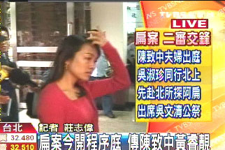 中新網(wǎng)10月30日電 據(jù)臺(tái)灣TVBS報(bào)道,臺(tái)灣高等法院審理扁家弊案,今天(30日)首度傳喚陳致中和黃睿靚出庭,對(duì)于媒體詢問只回答“謝謝”兩字,就快步進(jìn)入法庭。