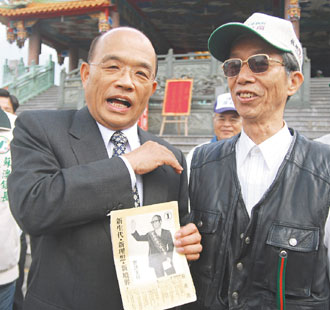 據(jù)臺灣聯(lián)合報報道,蘇貞昌應(yīng)邀,到宜蘭縣為民進(jìn)黨候選人輔選。蘇貞昌到場時,曾任宜蘭青商會常務(wù)監(jiān)事的林阿山更拿出30年前蘇貞昌參選全臺青商總會會長,到宜蘭爭取支持時發(fā)的老文宣,向蘇要簽名。
