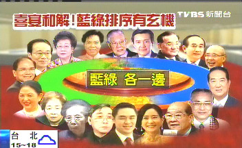 據(jù)報道,主桌最重要的位子是證婚人李登輝,再來是馬英九,順時針依序是連戰(zhàn)、王金平、吳伯雄、宋楚瑜、吳敦義、黃昆輝。而另一頭,李登輝夫婦旁邊,是呂秀蓮,民進黨時代的“閣揆”張俊雄、游錫堃,藍綠雖然同桌,但壁壘分明,分坐兩邊。