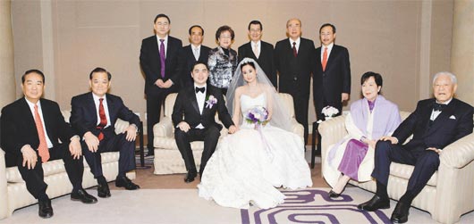 這場在臺北君悅飯店舉行的婚宴晚間6時入席,黑頭車整晚川流不息,媒體的閃光燈也閃個不停。