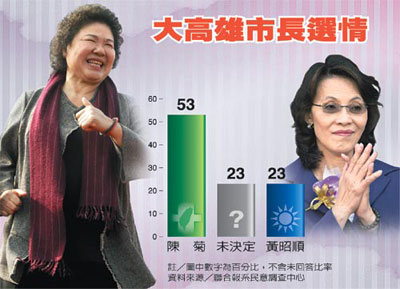 民進(jìn)黨“秋菊之戰(zhàn)”由陳菊勝出,國(guó)民黨未來(lái)若提名黨內(nèi)民調(diào)領(lǐng)先的“立委”黃昭順參選,年底大高雄將是“兩女相爭(zhēng)”局面。