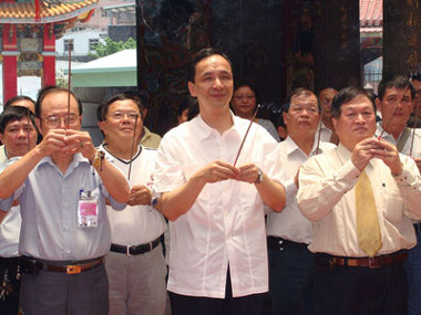 據(jù)悉,朱立倫19日上午在中和市長(zhǎng)邱垂益及地方民代陪同下,到舊居住樓下面包店、照相館等商家拜訪,沿路拜票到里民活動(dòng)中心,都獲老鄰居們歡迎,讓他直呼感動(dòng)。隨后,到福和宮、廣濟(jì)宮上香,祈求能順利當(dāng)選。