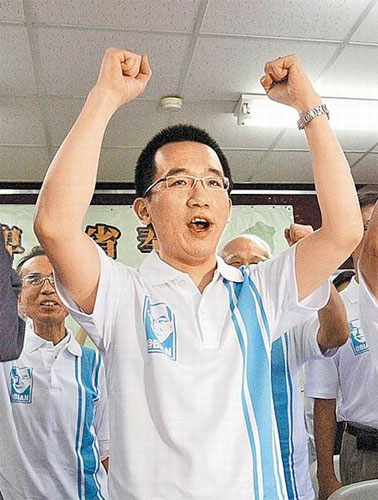 中新網(wǎng)6月13日電 據(jù)臺(tái)灣《蘋果日?qǐng)?bào)》報(bào)道,陳水扁兒子陳致中昨日正式宣布以無(wú)黨籍身分投入高雄巿前鎮(zhèn)、小港市議員選舉,他對(duì)扁案二審結(jié)果不愿再多說(shuō),強(qiáng)調(diào)自己不僅“代父出征”,更是為臺(tái)灣派、本土派出征。