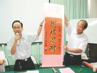 許添財之友會及臺南縣后援會干部近三百人昨天在臺南縣東山鄉(xiāng)聚餐,許添財雖未出席,但送來“團(tuán)結(jié)忍耐”中堂,會場彌漫主戰(zhàn)氣氛;會中決議,一旦許添財要參選大臺南市長,一定全力相挺。