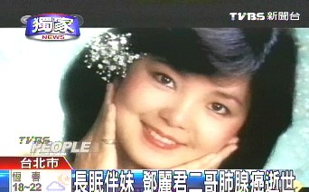 中新網(wǎng)2月22日電 據(jù)臺(tái)灣TVBS報(bào)道,鄧麗君過世多年,但始終有不少粉絲,就連今年高雄藝術(shù)燈會(huì)也特地成立鄧麗君紀(jì)念館,吸引不少游客。不過就在春節(jié)期間,鄧麗君的二哥鄧長順因?yàn)轭净挤蜗侔,不幸過世,享壽63歲。