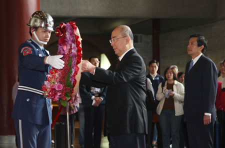 中新網(wǎng)11月12日電 今天是孫中山先生誕辰一百四十一周年紀(jì)念日,中國(guó)國(guó)民黨二00八參選人馬英九和國(guó)民黨主席吳伯雄及黨內(nèi)一級(jí)主管,上午前往臺(tái)北“國(guó)父紀(jì)念館”向中山先生遺像行禮致敬。